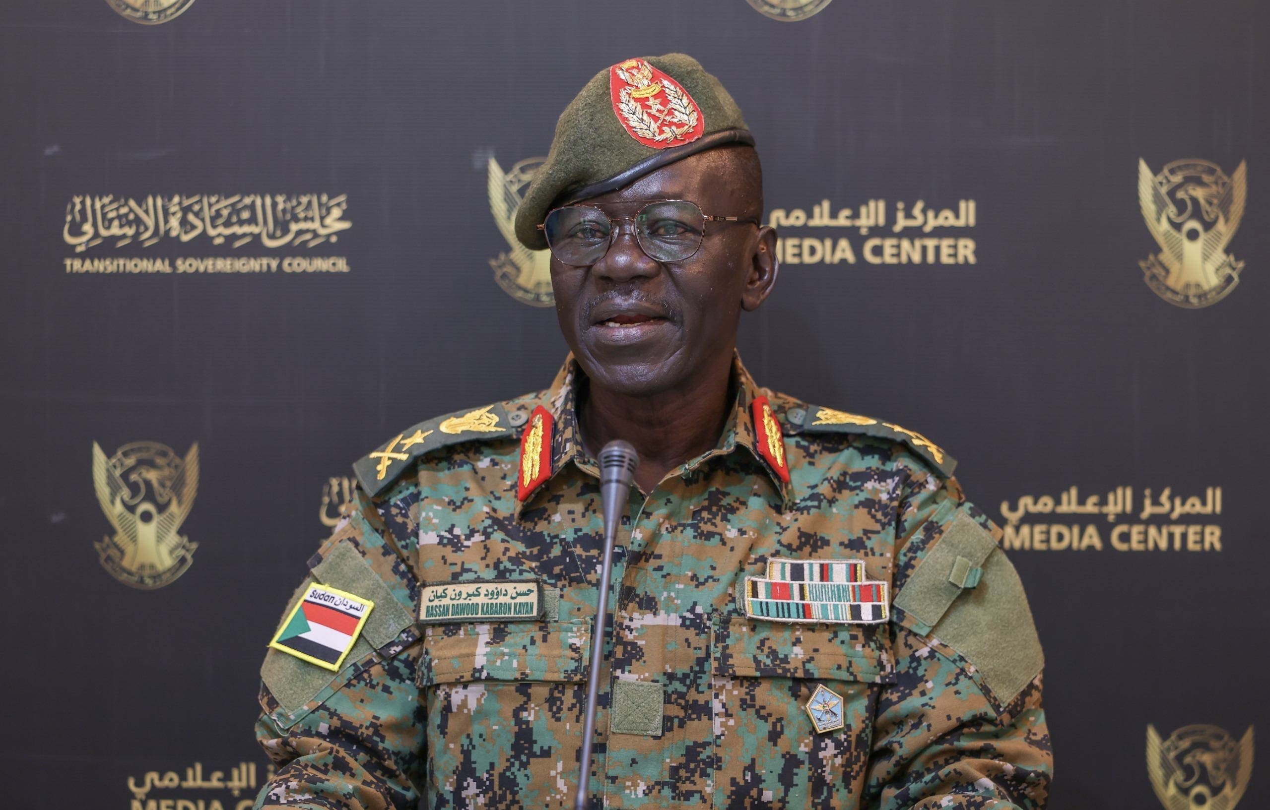 وزير الدفاع الفريق محاسب حسن داؤود كبرون يتلو بيان مجلس الأمن والدفاع الذي انعقد اليوم بولاية الخرطوم
