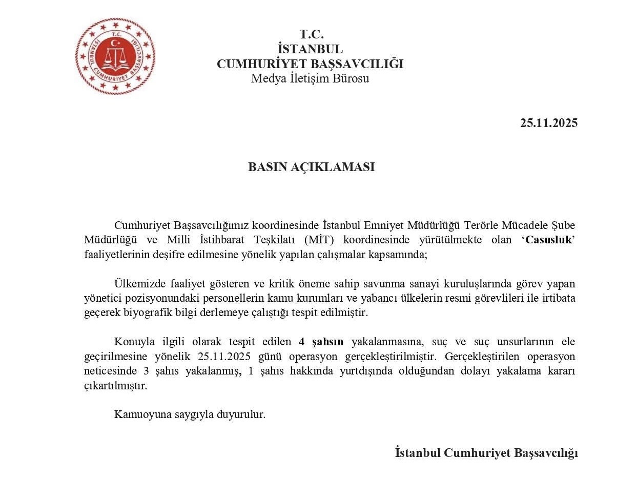 حذفت النيابة العامة في إسطنبول، بشكل لافت، جميع الإشارات إلى تورّط جهاز المخابرات الإماراتي من بيانها الرسمي المتعلق بعملية تجسّس أُعلن عنها صباح اليوم.
