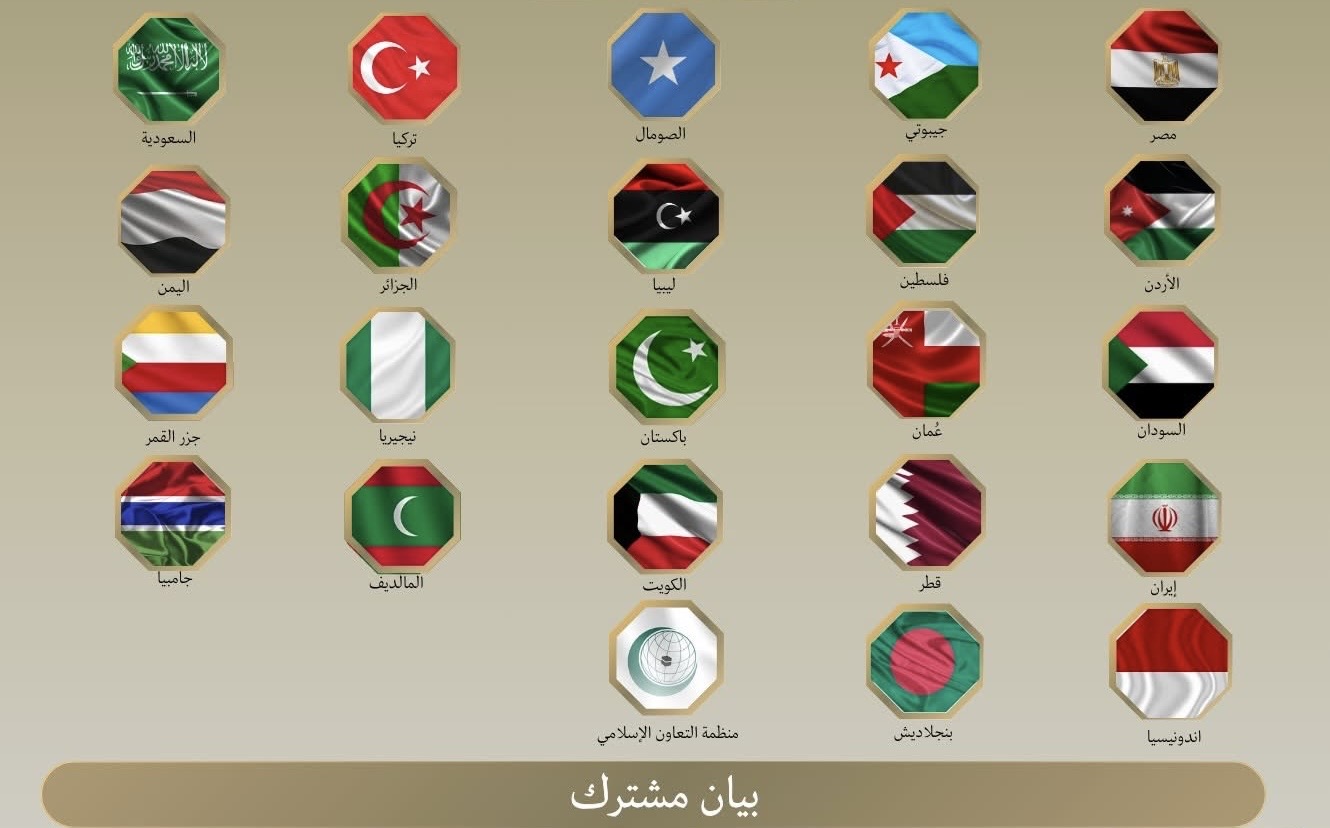 إن وزراء خارجية جمهورية مصر العربية، وجمهورية الجزائر الديمقراطية الشعبية، وجمهورية بنجلاديش الشعبية، واتحاد جزر القمر، وجمهورية جيبوتي، وجمهورية جامبيا، وجمهورية إندونيسيا، وجمهورية إيران الإسلامية، والمملكة الأردنية الهاشمية، ودولة الكويت، ودولة ليبيا، وجمهورية المالديف، وجمهورية نيجيريا الاتحادية، وسلطنة عُمان، وجمهورية باكستان الإسلامية، ودولة فلسطين، ودولة قطر، والمملكة العربية السعودية، وجمهورية الصومال الفيدرالية، وجمهورية السودان، وجمهورية تركيا، الجمهورية اليمنية، ومنظمة التعاون الإسلامي؛