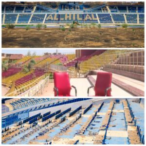 ١. عندما سقطت الملاعب الحرب قوة عشوائية.لا تُفرق بين الحياة والإرث. ملعب الهلال، حصن “الأزرق”، وملعب المريخ، معقل “الزعيم”، لم يكونا مجرد مباني؛ كانا مستودعين مقدسين للذاكرة الجماعية للأمة. لم تكن مشاهد الخرسانة المحطمة والمقاعد الممزقة بين الأنقاض مجرد دمار؛ بل كانت جرحًا (غريزيًا) في روح كل مشجع سوداني.